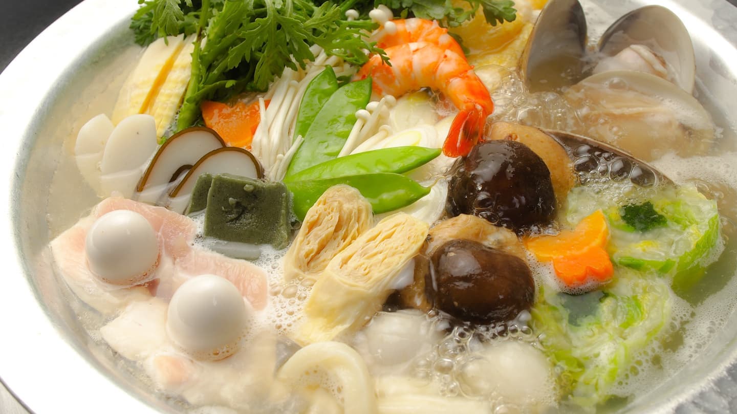| 会席コース 竹 (個室、ホール席とも) | 前菜・お造り・煮物・焼き物・うどんすき・デザート 6380円(税込) |